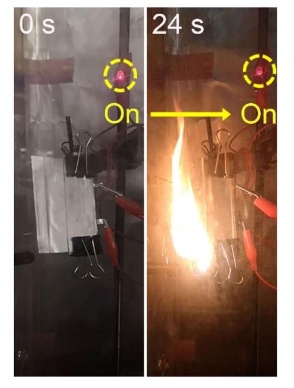 最終測(cè)試結(jié)果非常喜人,著火后,這種固態(tài)電池不僅沒有爆炸,甚至還在火焰下為L(zhǎng)ED燈持續(xù)供電了一段時(shí)間。