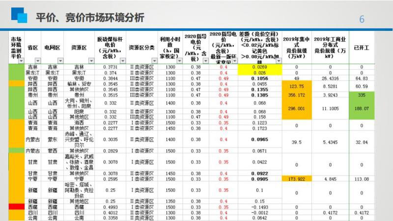 在平價、競價市場環(huán)境分析,投資企業(yè)應(yīng)根據(jù)市場環(huán)境監(jiān)測平價的顏色來判定在做前期工作的項目在申報是否有可能。土地面積充足的西北地區(qū)均為橙色地區(qū),橙色地區(qū)新增規(guī)模取決于電網(wǎng)?;菪墙ㄗh,在補貼在0.3元以內(nèi)綠色區(qū)域,如遼寧、吉林、黑龍江建議做平價項目;補貼在0.3-0.8的地區(qū)建議做競價項目,同時應(yīng)考慮地區(qū)2019年的實際開工情況;補貼大于0.8元的地區(qū),競價項目可能非常激烈,要提早做一些工作。另外,惠星表示,競價項目還應(yīng)考慮收購小時數(shù)。