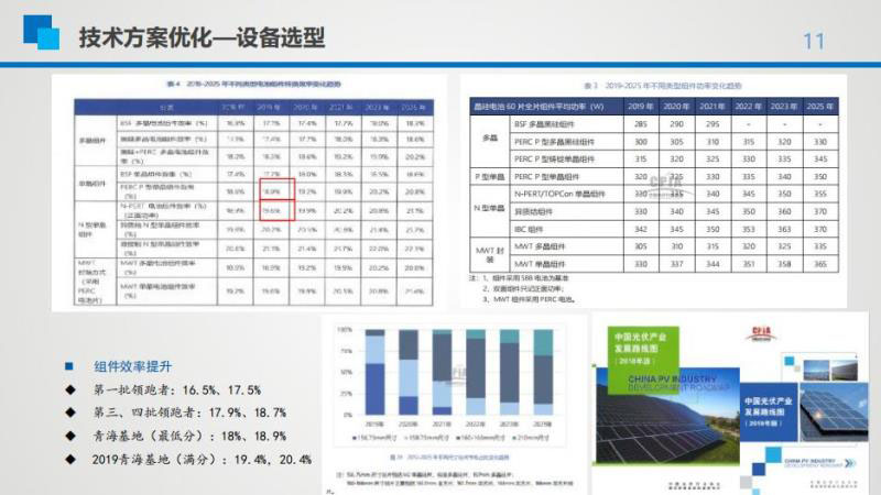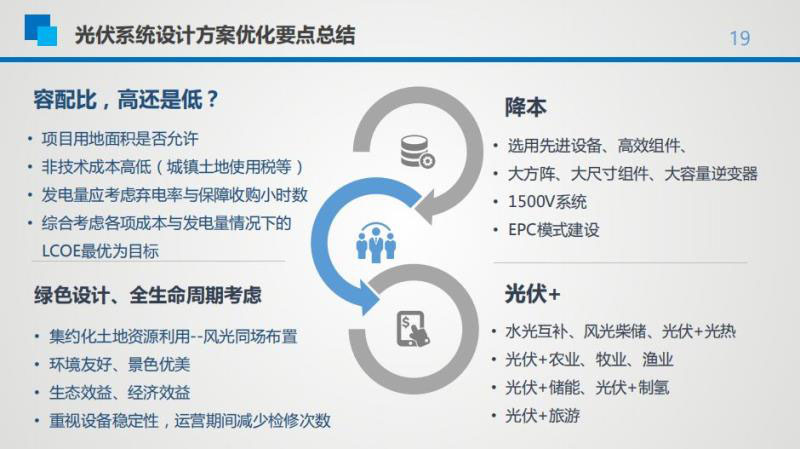 除容配比測算外,光伏系統(tǒng)設(shè)計方案優(yōu)化還應(yīng)盡可能采用先進設(shè)備高效組件進行降本以收益最優(yōu)進行競價方案測算,結(jié)合綠色設(shè)計與全生命周期考慮,并采用光伏+的方式,利用先進商業(yè)模式彌補項目的損失等。