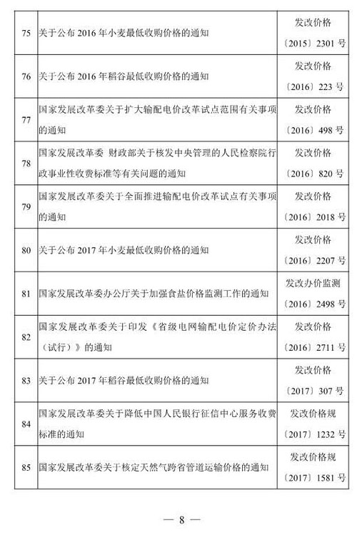 國家發(fā)展改革委決定廢止的價格規(guī)范性文件目錄