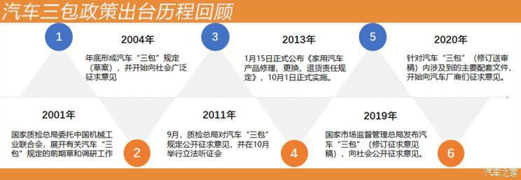 由于種種原因,制定工作曾擱置經(jīng)年,至2011年10月重啟;隨后制定速度大大加快,2012年6月,原國家質(zhì)檢總局局務(wù)會通過《汽車三包規(guī)定》,于2013年1月對外發(fā)布,并于當年10月1日正式實施。