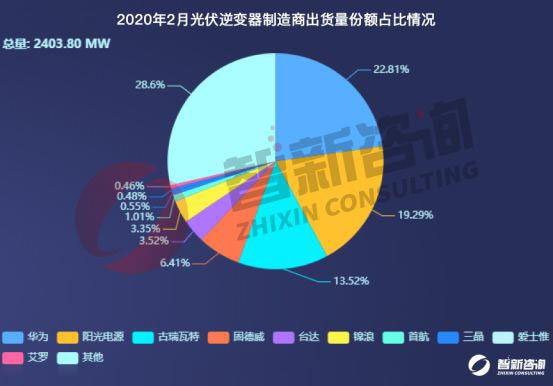 圖2:2020年2月光伏逆變器制造商出貨量份額占比情況