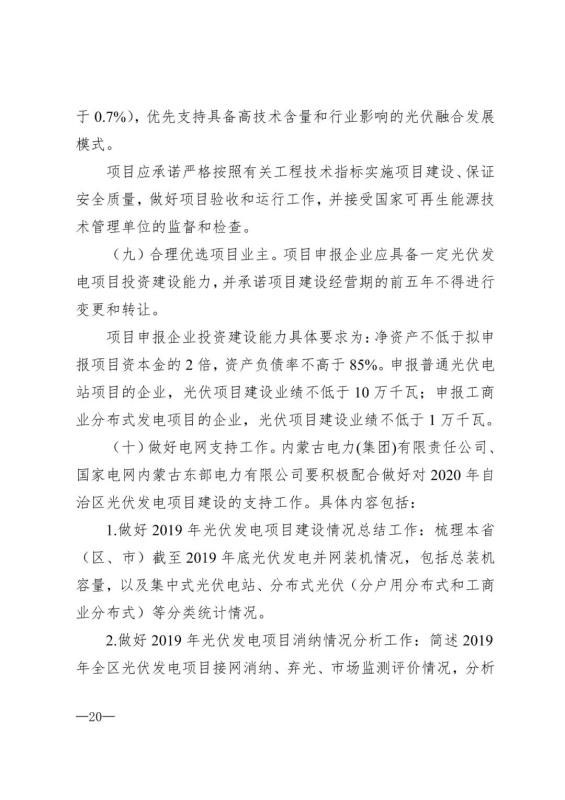 2020年內(nèi)蒙古自治區(qū)光伏發(fā)電發(fā)展明確了二個方面的工作要求。