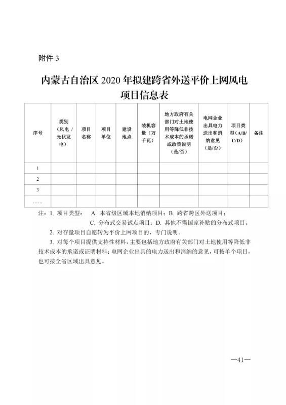 二是重新梳理報送跨省區(qū)平價上網(wǎng)風(fēng)電基地項目信息。按照《國家發(fā)展改革委國家能源局關(guān)于積極推進(jìn)風(fēng)電、光伏發(fā)電無補貼平價上網(wǎng)有關(guān)工作的通知》(發(fā)改能源[2019]19號)和《國家能源局綜合司關(guān)于報送2019年度風(fēng)電、光伏發(fā)電平價上網(wǎng)項目的通知》要求,根據(jù)各有關(guān)盟市報送情況,內(nèi)蒙古自治區(qū)能源局在2019年向國家能源局組織上報了兩批次不需要國家補貼的跨省區(qū)平價外送風(fēng)電項目名單??紤]到2019年已經(jīng)向國家報送項目的相關(guān)信息需要進(jìn)一步完善、2020年還有新增項目等因素,要求有關(guān)盟市能源主管部門重新梳理2020年底前能夠核準(zhǔn)并且開工建設(shè)、按照平價上網(wǎng)推進(jìn)的跨省區(qū)外送風(fēng)電基地項目。