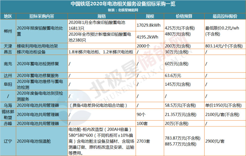 另外,中國鐵塔還將采購基站用的大容量動力電池,計劃在甘肅甘南試點驗證大容量動力電池的應(yīng)用場景,限價最高不超過0.5元/Wh?;緝δ苷诖蜷_退役動力電池梯次利用新應(yīng)用窗口。