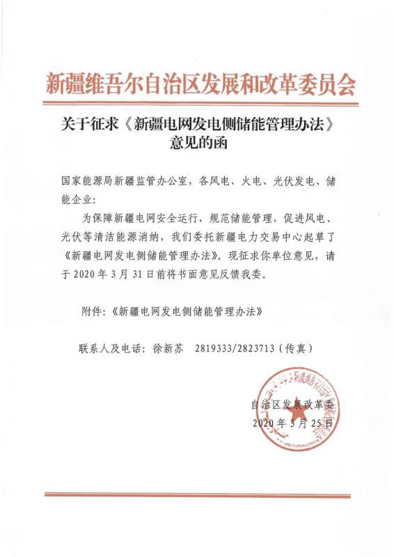 《新疆電網(wǎng)發(fā)電側(cè)儲能管理辦法》意見征集發(fā)布 補償標準0.55元/千瓦時