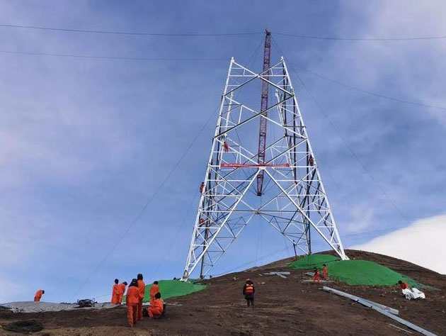 2月24日,青海至河南特高壓直流輸電工程青海段復(fù)工,施工人員進(jìn)行組塔作業(yè)