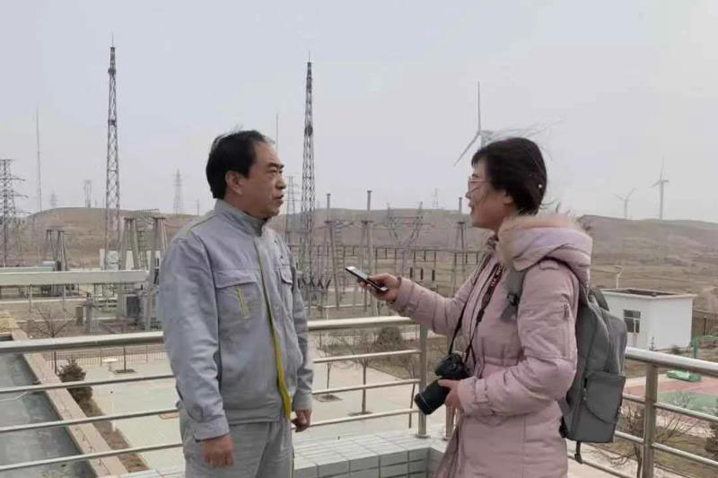 國投白銀風(fēng)電有限公司撿財塘風(fēng)電場總經(jīng)理王曉明在接受記者采訪。