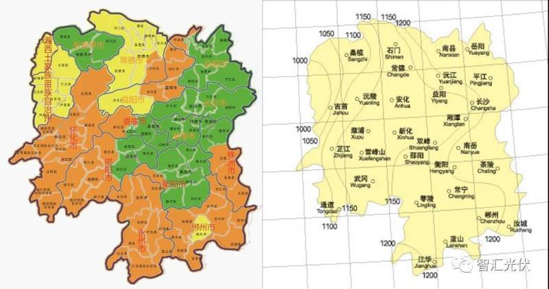 通過(guò)消納圖和太陽(yáng)能資源分布圖可以看出,湖南大部分消納綠色區(qū)域,屬于本省太陽(yáng)能資源較好的地區(qū)。