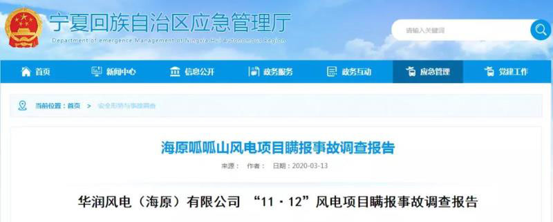 2019年11月12日16時(shí)許,華潤風(fēng)電(海原)有限公司海原呱呱山200MW風(fēng)電項(xiàng)目在建工地發(fā)生一起較大事故,造成5人死亡。事故發(fā)生后,事故責(zé)任單位未向當(dāng)?shù)卣坝嘘P(guān)部門報(bào)告情況,刻意隱瞞事故真相,后經(jīng)群眾舉報(bào)、有關(guān)部門多次核查,查實(shí)了其瞞報(bào)事故的行為。