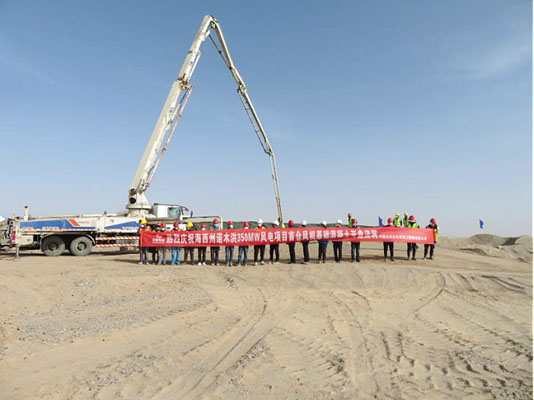 3月16日,黃河公司諾木洪350MW風電項目首臺風機基礎承臺順利澆筑完成。