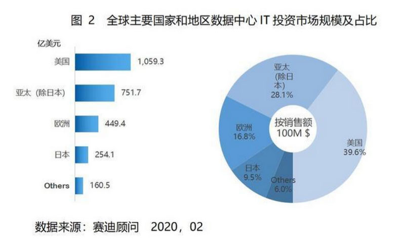 從全球數(shù)據(jù)中心建設發(fā)展來看,世界前三大數(shù)據(jù)中心市場——美國、日本和歐洲的數(shù)據(jù)中心IT投資規(guī)模仍占全球數(shù)據(jù)中心IT投資規(guī)模的60%以上,美國保持市場領導者地位,在數(shù)據(jù)中心產品、技術、標準等方面引領全球數(shù)據(jù)中心市場發(fā)展。亞太市場仍是全球數(shù)據(jù)中心市場的亮點,與2018年同期相比增長達到12.3%,數(shù)據(jù)中心IT投資規(guī)模達到751.7億美元,主要動力仍來自中國數(shù)據(jù)中心市場穩(wěn)步發(fā)展,移動互聯(lián)網、云計算、大數(shù)據(jù)、人工智能等應用深化,互聯(lián)網+,人工智能x,工業(yè)互聯(lián)網建設加速。