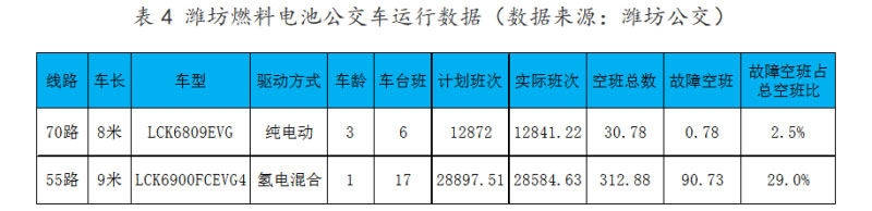 三是首批燃料電池公交車故障率偏高,利用效率不高。與純電動(dòng)車相比,17輛燃料電池公交車故障空班比例高出10倍以上。