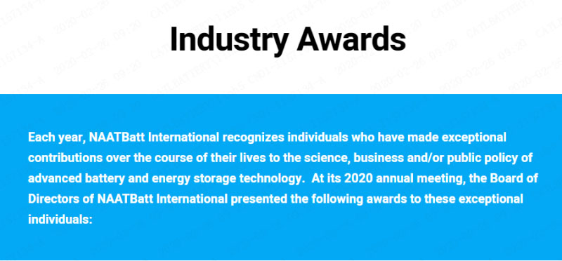 在近期舉行的美國國家先進(jìn)技術(shù)電池聯(lián)盟(National Alliance for Advanced Technology Batteries,以下簡稱NAATBatt)年度會(huì)議上,寧德時(shí)代創(chuàng)始人、董事長曾毓群被授予年度終身成就獎(jiǎng)。