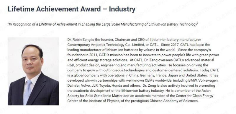 本次頒發(fā)的獎(jiǎng)項(xiàng)主要表彰曾毓群博士為推動(dòng)鋰離子動(dòng)力電池技術(shù)實(shí)現(xiàn)大規(guī)模量產(chǎn)作出的突出貢獻(xiàn)。