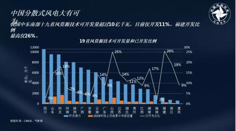 另外,在秦海巖秘書長看來,相比較目前僅11%的開發(fā)空間,分散式風(fēng)電仍舊存在巨大的增長空間。山西和福建成為分散式風(fēng)電開發(fā)比率的領(lǐng)頭羊,達(dá)到25%以上,而開發(fā)潛力最多的是四川省。總體而言,分散式風(fēng)電未來可開發(fā)量超過10億千瓦,值得期待,未來可期。風(fēng)電設(shè)備市場也隨著技術(shù)的進(jìn)步,出口市場在不斷擴(kuò)大。