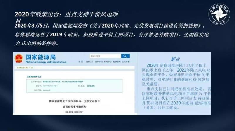 實(shí)際上,風(fēng)電平價(jià)時(shí)代已經(jīng)到來。在國家能源局發(fā)布的《關(guān)于2020年風(fēng)電、光伏發(fā)電項(xiàng)目建設(shè)有關(guān)的通知》中,著重強(qiáng)調(diào)了重點(diǎn)支持平價(jià)風(fēng)電項(xiàng)目。
