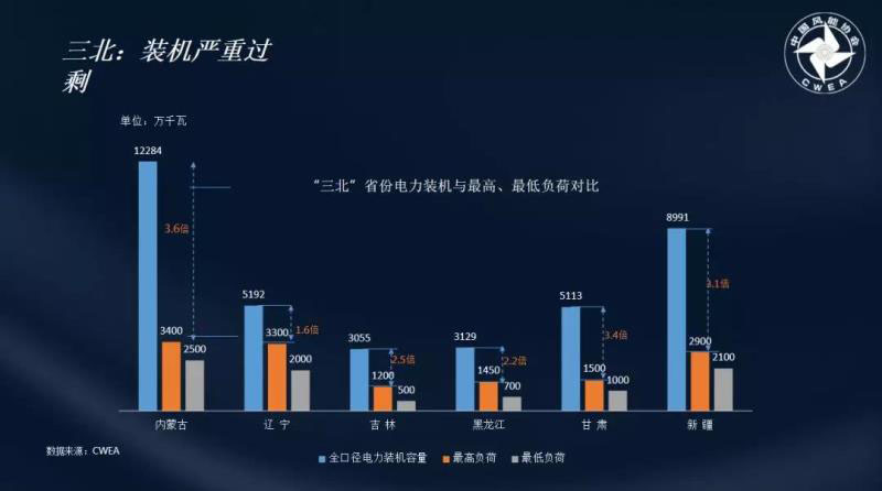 秦海巖秘書長對三北地區(qū)未來市場進(jìn)行了重點(diǎn)講解。在他看來,三北地區(qū)首先面對的是嚴(yán)重過剩的裝機(jī)量。三北省份電力裝機(jī)與最高、最低負(fù)荷最大差距達(dá)到內(nèi)蒙古的3.6倍,最小差距也有1.6倍。