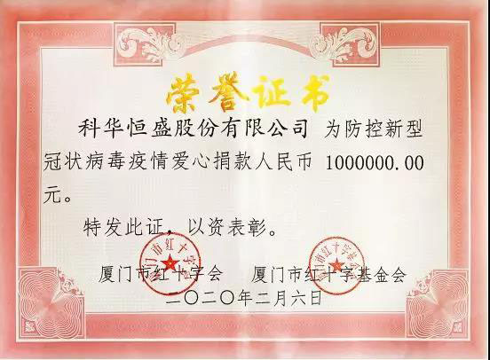 當前,疫情防控的狙擊戰(zhàn)正處于關(guān)鍵時期,舉國上下高度重視,也時刻牽動著科華人的心。為馳援新型冠狀病毒肺炎疫情防控工作,2月6日科華恒盛股份有限公司及其全資子公司漳州科華技術(shù)有限責任公司向廈門市紅十字會、漳州市薌城區(qū)紅十字會捐贈共計200萬元現(xiàn)金。后續(xù),公司將根據(jù)抗擊疫情的需求捐贈我司產(chǎn)品設(shè)備并提供解決方案,全力支持抗擊新型冠狀病毒感染的肺炎疫情,切實履行上市公司社會責任。