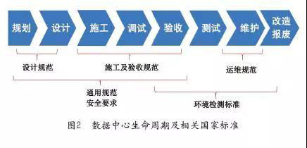 一個(gè)數(shù)據(jù)中心實(shí)體,通常由一個(gè)或者一組建筑內(nèi)的如圖1所示的設(shè)備組成。數(shù)據(jù)中心是一個(gè)復(fù)雜的系統(tǒng),是一個(gè)工程。要建造一個(gè)數(shù)據(jù)中心,需要經(jīng)過(guò)選址、規(guī)劃、設(shè)計(jì)、施工、調(diào)試、測(cè)試驗(yàn)證和驗(yàn)收等一系列復(fù)雜的過(guò)程,見(jiàn)圖2。