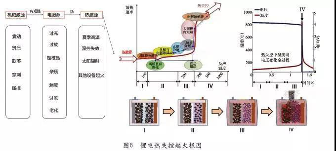 電池外部在機械\電\熱激源等刺激下會引發(fā)熱的情形,從而引發(fā)鋰電池?zé)崾Э氐臐撛谖:?見圖8)。