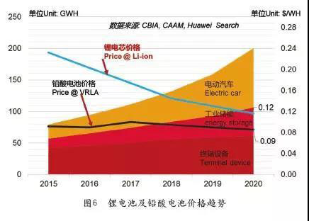 1、成本是瓶頸,但未來可期隨著鋰電池在電動汽車、工業(yè)儲能、終端設(shè)備等行業(yè)的大量使用,以及整個行業(yè)生態(tài)的建立,鋰電池成本成逐年下滑的趨勢。而鉛酸電池(含鉛)成本卻時高時低,未來成本有上升趨勢。因此,在不久的將來,鋰電池的成本優(yōu)勢會愈發(fā)明顯,鋰電池必將在數(shù)據(jù)中心大規(guī)模應(yīng)用。但是,就目前來看,因為行業(yè)鉛酸品牌及價格層次不齊,給我們的感覺還是鋰電池比鉛酸電池貴(見圖6)。