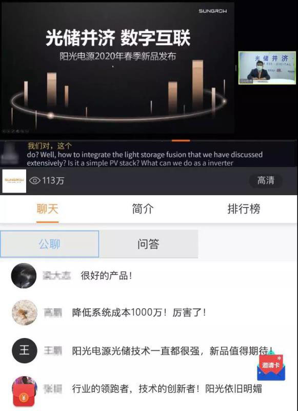 2月14日,“PAT2020愛(ài)光伏一生一世 光儲(chǔ)并濟(jì) 數(shù)字互聯(lián)先進(jìn)技術(shù)研討會(huì)”如約面向全球直播。會(huì)上,震撼升級(jí)的集中逆變器SG3125HV從降低度電成本(LCOE)、加強(qiáng)光儲(chǔ)深度融合和提升電網(wǎng)支撐能力入手,直擊平價(jià)上網(wǎng)痛點(diǎn)。