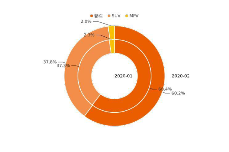 2月,新能源車中轎車、SUV、MPV用戶購車意向占比分別為60.6%、37.4%、2.1%。轎車用戶意向占比相較上月下降0.6個百分點(diǎn),份額開始回落。SUV用戶意向占比開始轉(zhuǎn)跌為升,環(huán)比增加0.8個百分點(diǎn)。MPV用戶意向占比2月環(huán)比降低0.1個百分點(diǎn),意向占比仍較低。整體來看,SUV車型用戶意向在經(jīng)歷了一段時間的份額擴(kuò)張后逐步回調(diào),轎車市場熱度逐步回溫,市場回歸理性。但作為日常家用車,新能源轎車車型相對SUV車型還是更具優(yōu)勢。