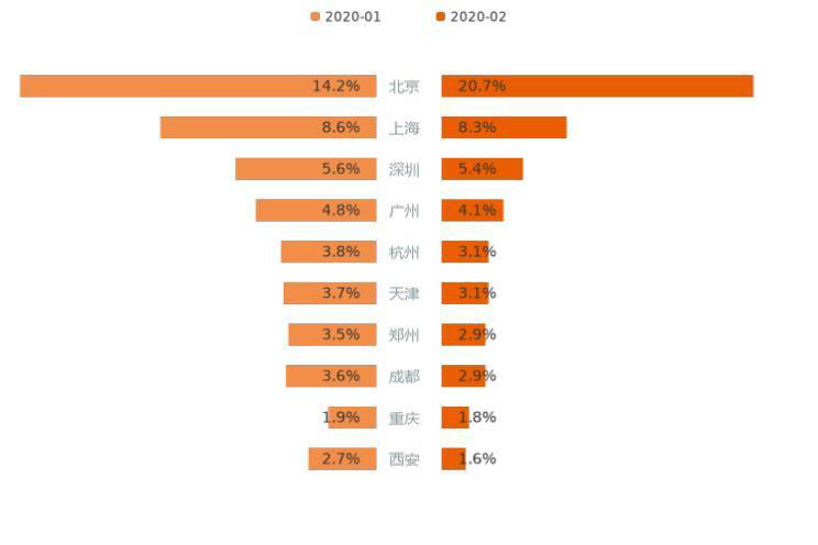 ■ 分區(qū)域走勢:意向占比達(dá)20.7%,北京大幅領(lǐng)先其他城市