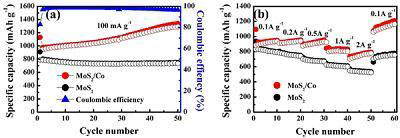 圖1. MoS2/Co復合材料的循環(huán)和倍率性能。