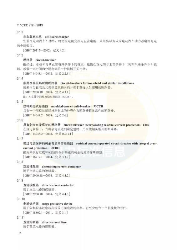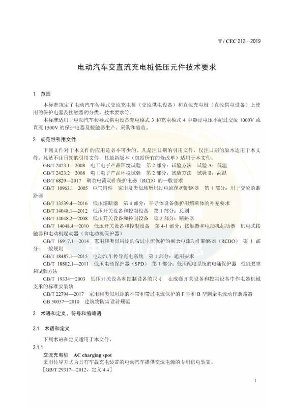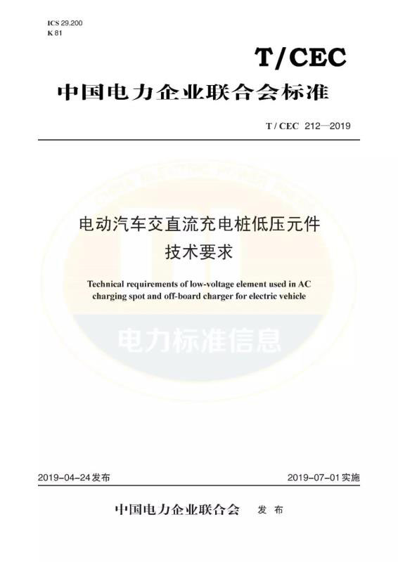 《電動汽車交直流充電樁低壓元件技術(shù)要求》T/CEC 212—2019
