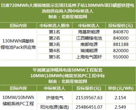 首選中標(biāo)候選人:許繼電氣(中標(biāo)價格約為2154萬元),以單價2.154元/Wh的價格優(yōu)勢獲得中標(biāo)