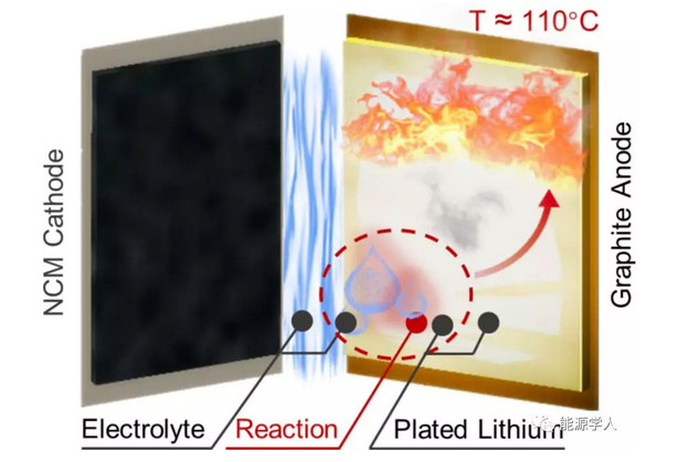 傳統(tǒng)的觀點(diǎn)認(rèn)為,鋰離子電池的熱失控是由于電池內(nèi)部升溫造成聚烯烴隔膜收縮甚至融化導(dǎo)致的內(nèi)短路所致[1]。最新的研究表明,對(duì)于不同的電池體系和濫用條件來說,其電池?zé)崾Э氐臋C(jī)制不盡相同。高比能電池內(nèi)部正負(fù)極之間的交叉反應(yīng)、過充或低溫循環(huán)造成的負(fù)極側(cè)析鋰等因素都有可能引發(fā)電池?zé)崾Э?。在這一方面,歐陽(yáng)明高院士團(tuán)隊(duì)做出了系統(tǒng)而深入的成果。