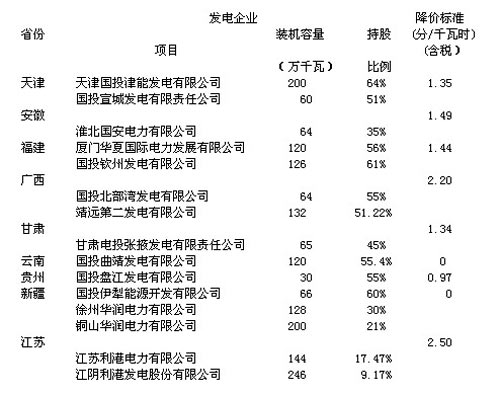 根據(jù)國家發(fā)展改革委通知,公司燃煤機組所在省份的上網(wǎng)電價調整情況如下:
