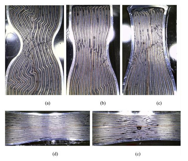 2)多層集流體斷裂:在剪切力的作用上電芯發(fā)生了多層集流體的斷裂,并呈現(xiàn)出角度為45度左右的斷裂線。