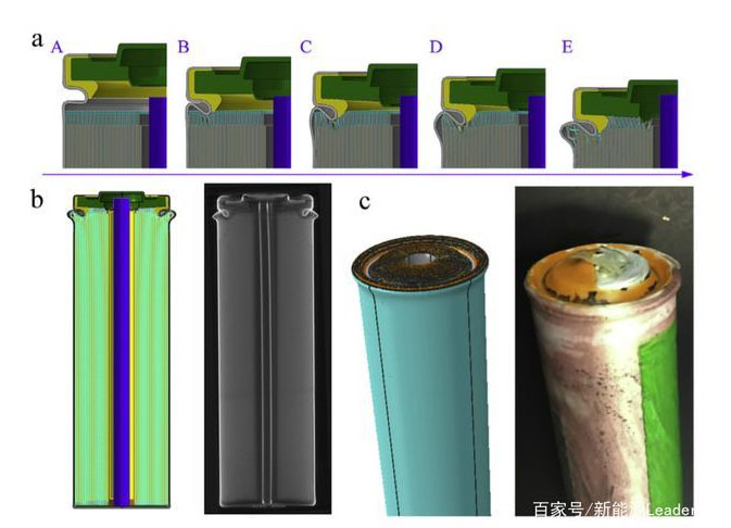 美國麻省理工學(xué)院的Juner Zhu等人利用18650電池研究了在發(fā)生軸向擠壓的過程中鋰離子電池的發(fā)生熱失控的機理,并利用有限元分析模型進行了仿真分析,該模型還原了不同的軸向壓力對鋰離子電池造成的影響,分析結(jié)果得到了CT掃描的驗證,該仿真分析結(jié)果發(fā)現(xiàn)了兩種可以解釋在擠壓試驗中導(dǎo)致鋰離子電池發(fā)生短路原因。