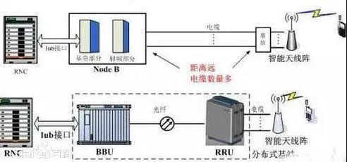 分布式基站是新一代用于完成網(wǎng)絡(luò)覆蓋的現(xiàn)代化產(chǎn)品。其特點主要是將射頻處理單元和傳統(tǒng)宏基站基帶處理單元分離的同時又通過光纖連接,分布式基站結(jié)構(gòu)的核心概念就是把傳統(tǒng)宏基站基帶處理單元(BBU)和射頻處理單元(RRU)分離,二者通過光纖相連。在網(wǎng)絡(luò)部署時,將基帶處理單元與核心網(wǎng)、無線網(wǎng)絡(luò)控制設(shè)備集中在機房內(nèi),通過光纖與規(guī)劃站點上部署的射頻拉遠單元進行連接,完成網(wǎng)絡(luò)覆蓋,從而降低建設(shè)維護成本、提高效率。
