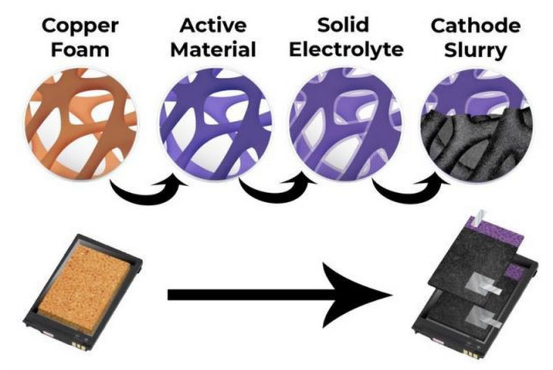 保持住電池負(fù)電荷的陽極是由泡沫銅制成的,上面還涂有所需的活性材料。