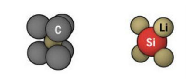 作為陽極,硅比石墨好用的原因在于需要4個碳原子才能hold住鋰,而1個硅原子就能hold住4個鋰離子 。這是一次重大升級……使得硅的性能比石墨強了3倍。