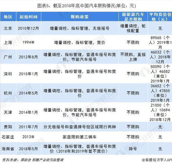 現(xiàn)階段,除補貼政策外,我國新能源乘用車普及率的提升離不開限購限行政策的支持。截止到2018年,北京、上海、深圳、廣州、杭州和天津6個城市實行嚴格的機動車限購政策。從北京、上海、深圳、杭州、天津等地的限行政策來看,汽車限購政策管控較嚴格,包括增量調(diào)控、指標管理、普通車搖號和競價、節(jié)能汽車搖號等多類型限制,但是對于新能源汽車不限購(北京市除外),這也極大地驅(qū)動了當?shù)匦履茉雌嚨南M,從我國新能源熱銷城市TOP5分別是深圳、上海、廣州、北京和杭州就可見一斑。