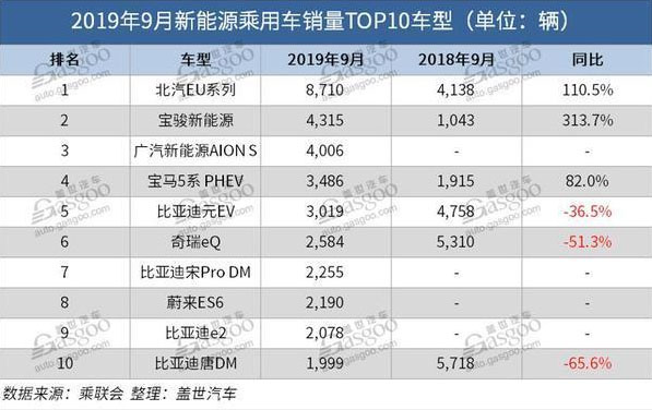 9月新能源汽車(chē)市場(chǎng)表現(xiàn)雖持續(xù)下降,但是不同車(chē)型之間的激烈卻更為競(jìng)爭(zhēng),較之上月,9月新能源乘用車(chē)銷(xiāo)量TOP10車(chē)型排名出現(xiàn)了大調(diào)整。