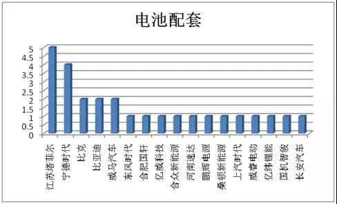 配套數(shù)量上,本批25款乘用車由17家電池企業(yè)配套,分布極為零散,包括威馬汽車、合眾新能源、國(guó)機(jī)智駿等供應(yīng)總成。排名前三企業(yè)配套15款車型占據(jù)6成,另有12家企業(yè)僅僅配套一款車型。