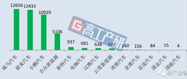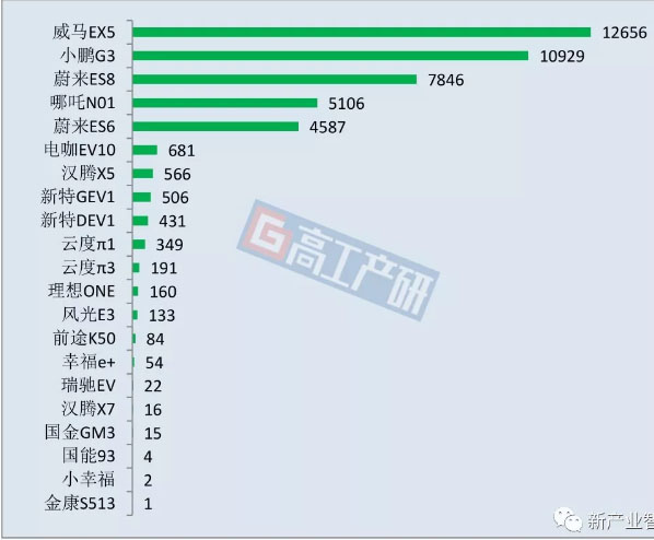 2019年前三季度造車新勢(shì)力各車型銷量排名(輛)
