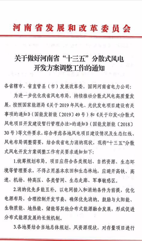 中國儲能網(wǎng)訊:河南省發(fā)布《關(guān)于做好河南省“十三五”分散式風(fēng)電開發(fā)方案調(diào)整工作的通知》,將對2017年發(fā)布原“十三五”分散式風(fēng)電開發(fā)方案做出調(diào)整,原開發(fā)方案涉及共124個(gè)項(xiàng)目,總規(guī)模210.7萬千瓦。