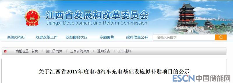 關(guān)于江西省2017年度電動汽車充電基礎(chǔ)設(shè)施擬補貼項目的公示