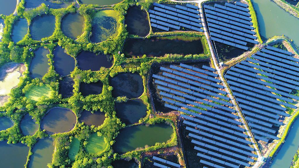 圖為近日在湖州市南潯區(qū)和孚鎮(zhèn),千年?;~塘系統(tǒng)與清潔能源利用構成一幅和諧的生態(tài)美景。吳建勛 攝