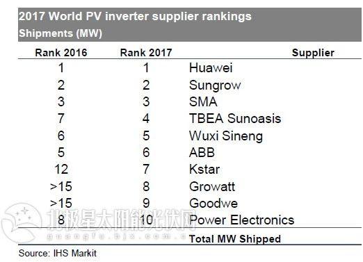 中國儲能網(wǎng)訊:繼GTM Research之后,全球權(quán)威調(diào)研機構(gòu)IHS重磅發(fā)布2017年光伏逆變器榜單: