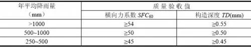 《瀝青路面設(shè)計(jì)規(guī)范》提到,高速公路、一級公路瀝青路面的抗滑性能,以橫向力系數(shù)測試車在 60km/h 車速下測得的橫向力系數(shù) ( SFC60 ) 和構(gòu)造深度 ( TC ) 為主要指標(biāo)。