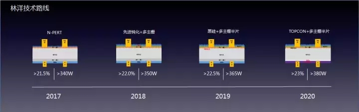 同時(shí)表示林洋將在未來三年內(nèi),達(dá)到轉(zhuǎn)換效率>23%,組件功率達(dá)到380W。