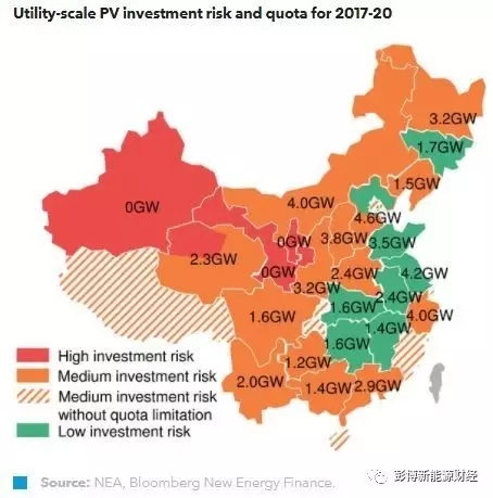2017 到 2020 年,“低風險”地區(qū)的光伏電站新增建設指標。